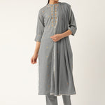 Grey & Orange Embroidered Kurta with Trousers & Dupatta