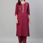 Burgundy & Gold-Toned Printed Kurta with Trousers