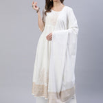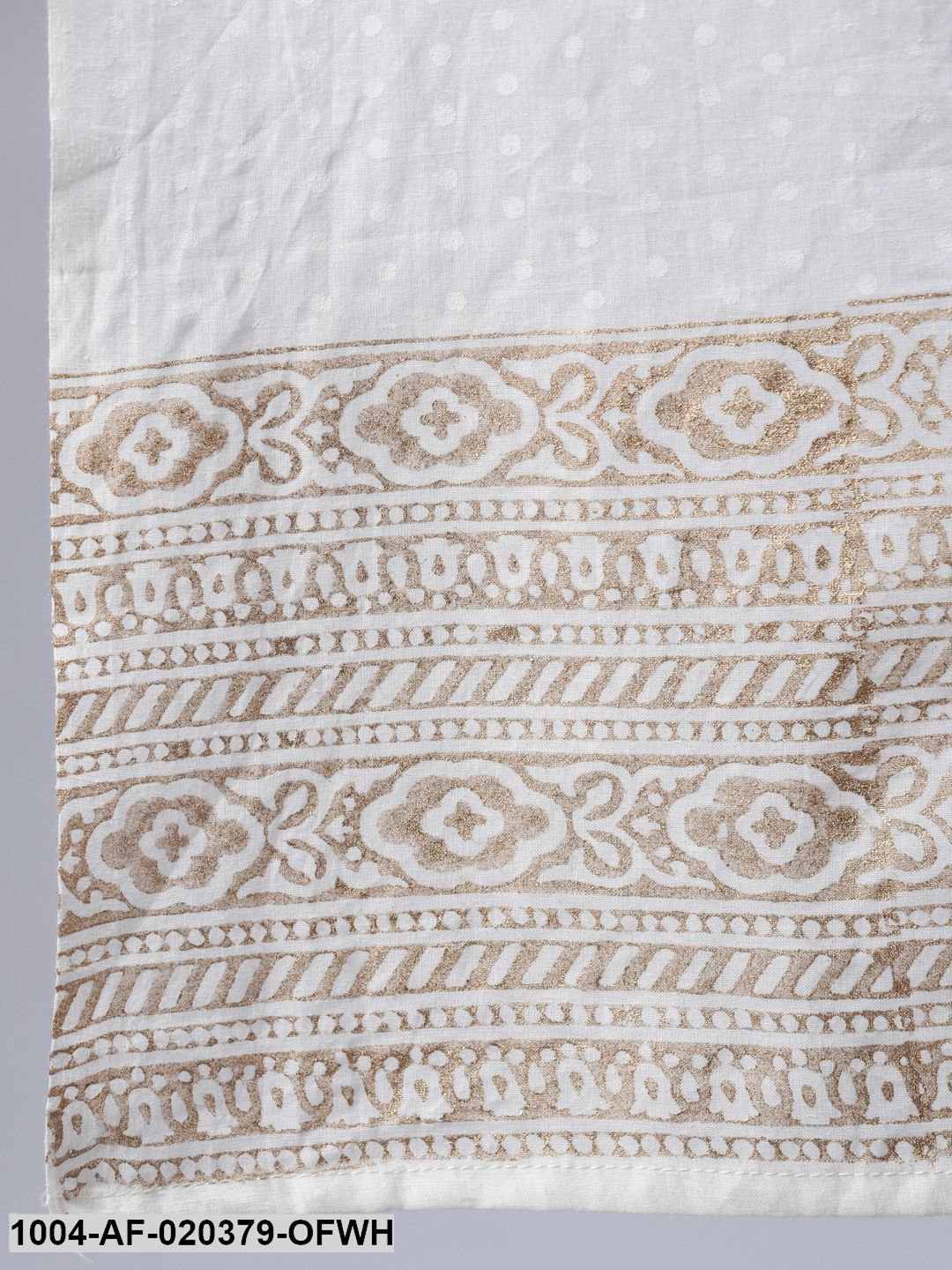 Off-White & Golden Block Printed Anarkali With Palazzo & Dupatta