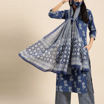 Blue White Pure Cotton Ethnic Motif Print Kurta Set