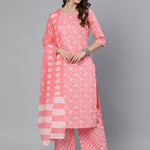 Peach-Coloured Floral Printed Regular Straight Pure Cotton Kurta & Palazzos