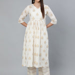 Cream-Coloured Printed Gathered Kurta With Plazzo
