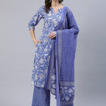 Purple & White Straight Screen Floral Print Pure Cotton Kurta & Palazzos