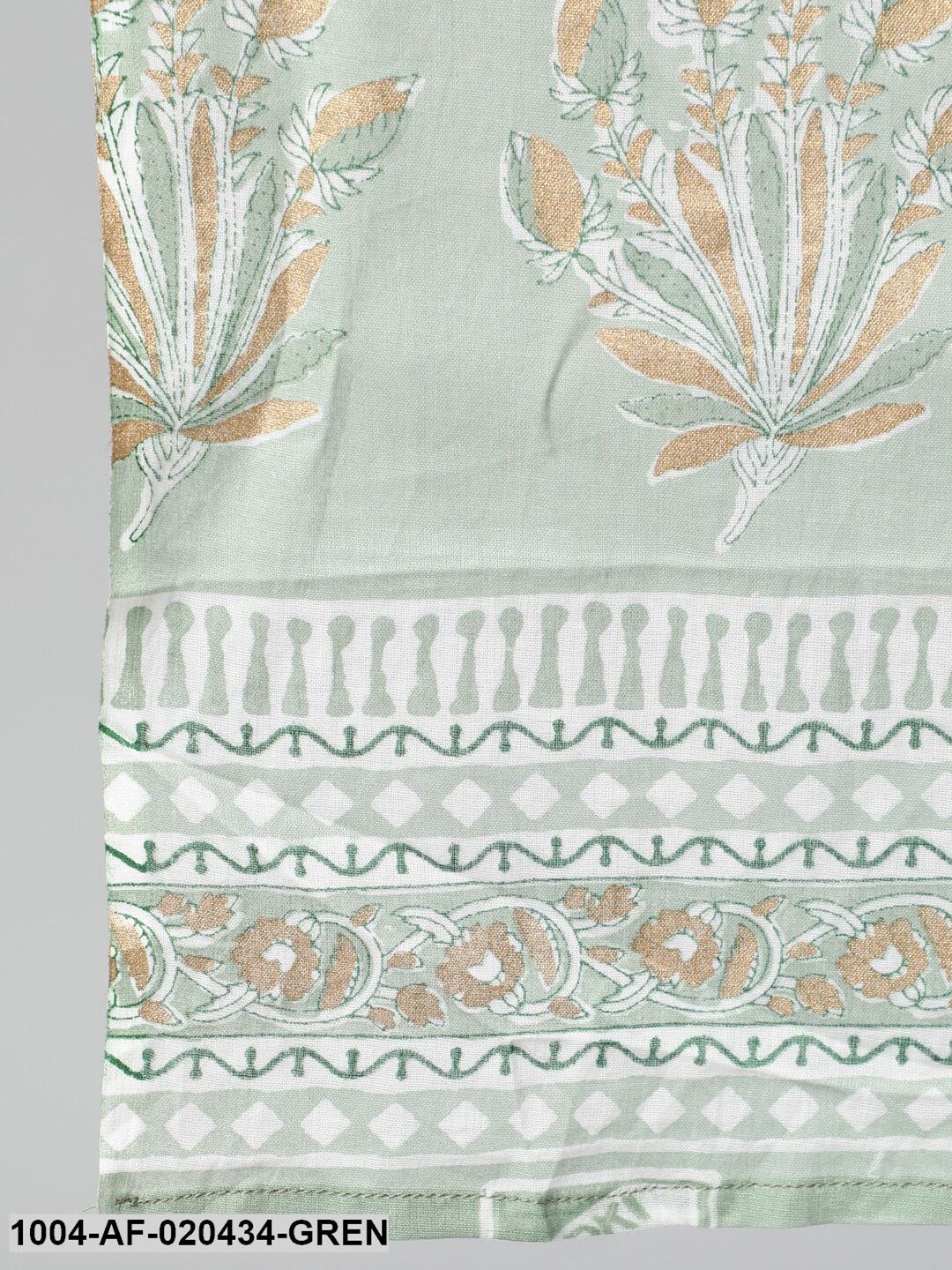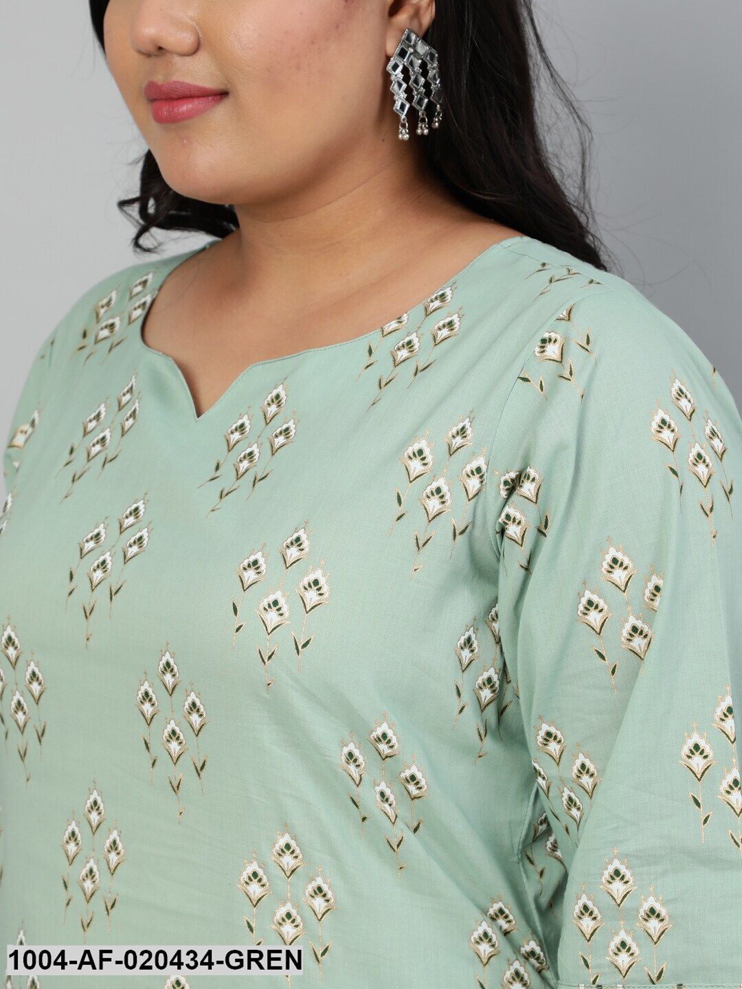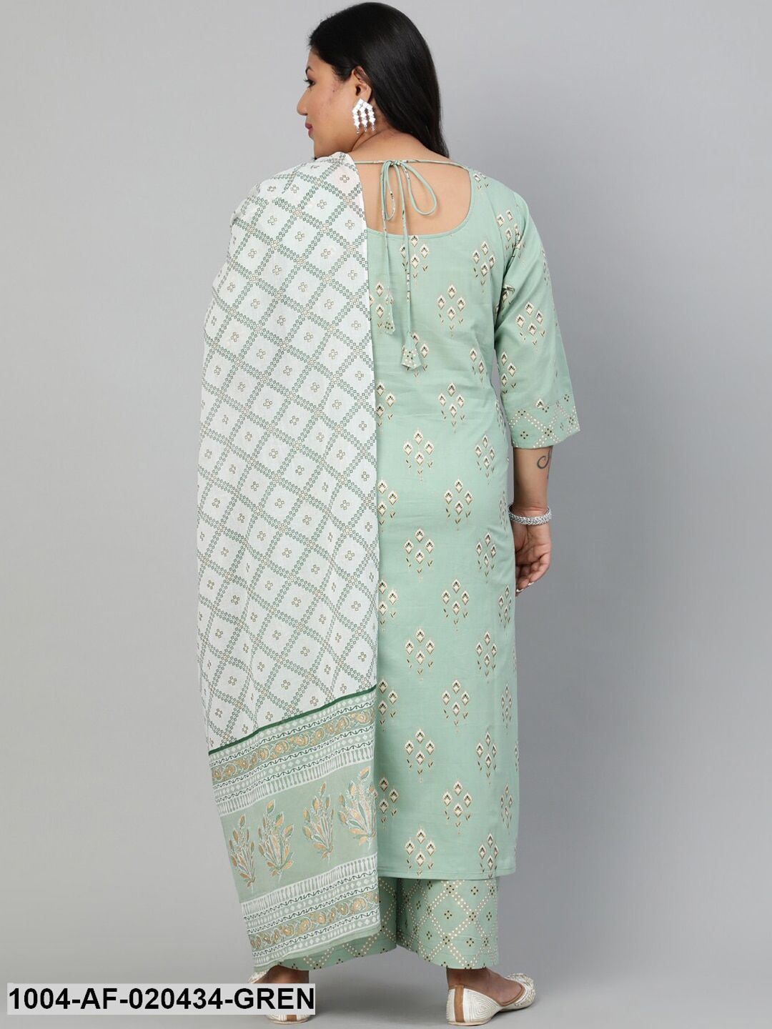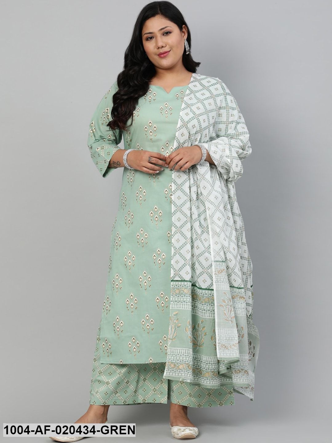Plus Size Green Ethnic Motifs Printed Pure Cotton Kurta with Palazzos & Dupatta