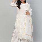 Plus Size Off White Floral Printed Pure Cotton Kurta with Palazzos & Dupatta