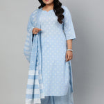 Blue & White Ethnic Motifs Printed Regular Straight Pure Cotton Kurta &