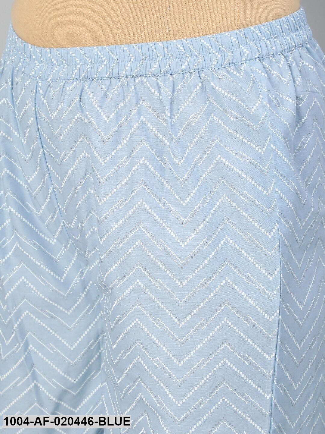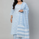 Plus Size Blue Ethnic Motifs Printed Pure Cotton Kurta with Palazzos & Dupatta
