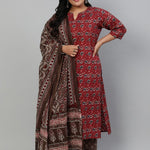 Plus Size Maroon Ethnic Motifs Pure Cotton Kurta with Palazzos & Dupatta