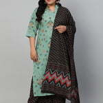 Plus Size Green Printed Empire Kurta with Palazzos & Dupatta