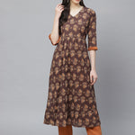 Brown Printed Kurta with Trousers