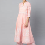 Pink & White Ethnic Motifs Print A-Line Kurta with Palazzos