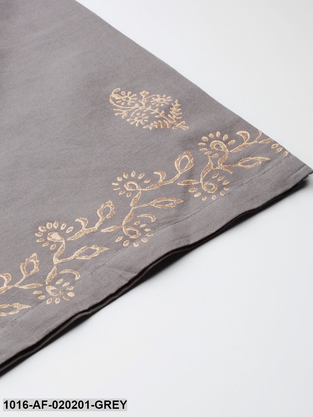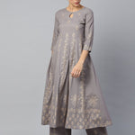 Grey & Golden Ethnic Motifs Print A-Line Kurta with Palazzos