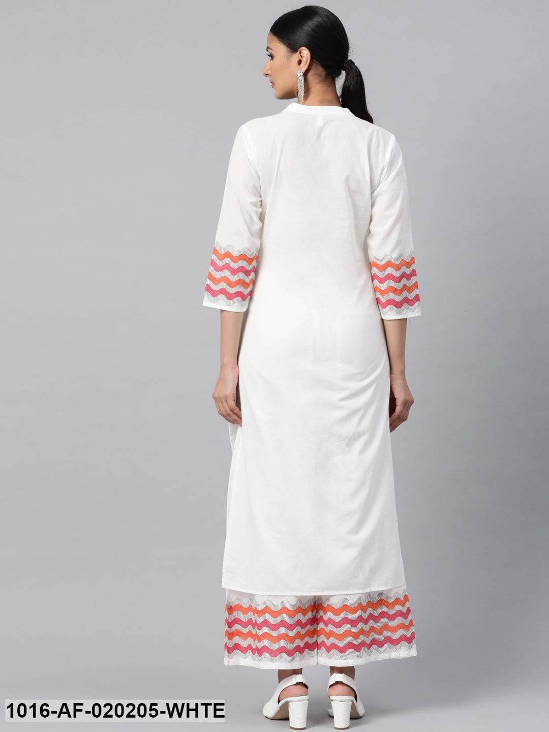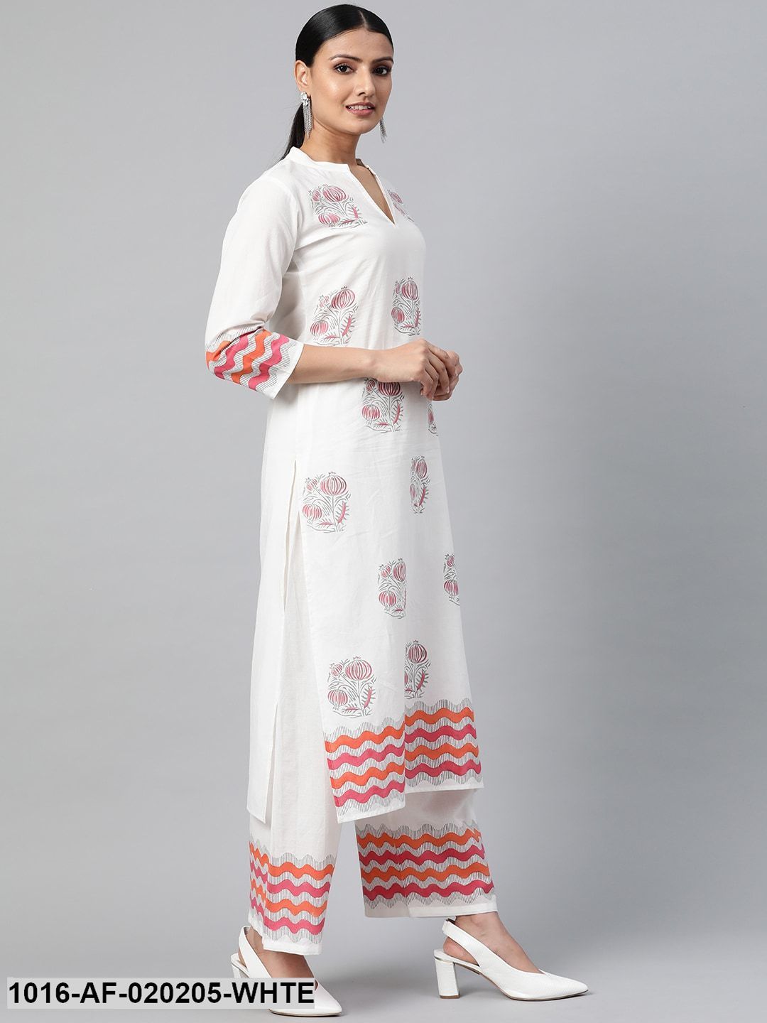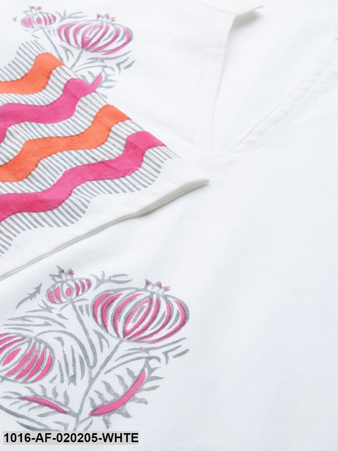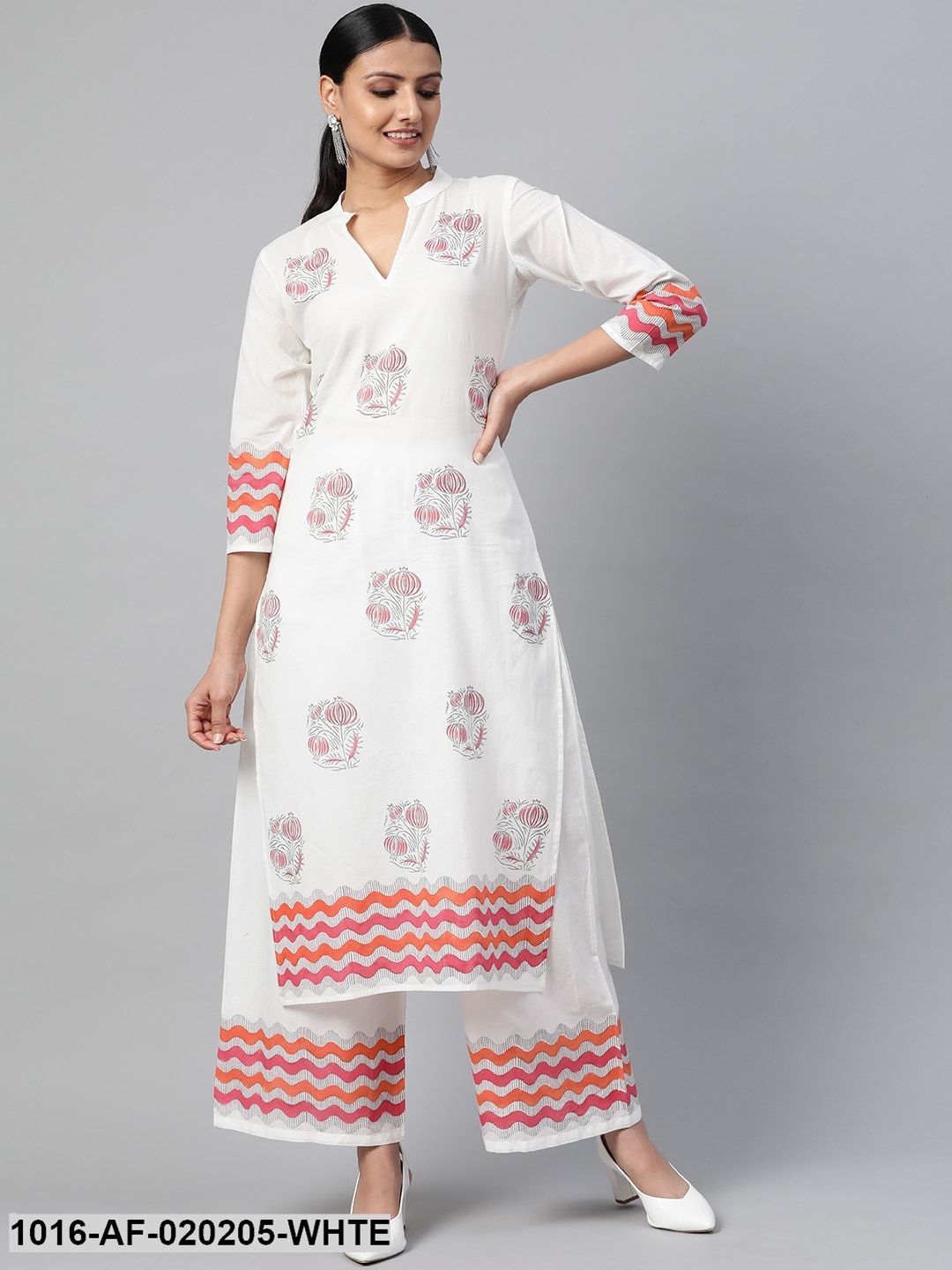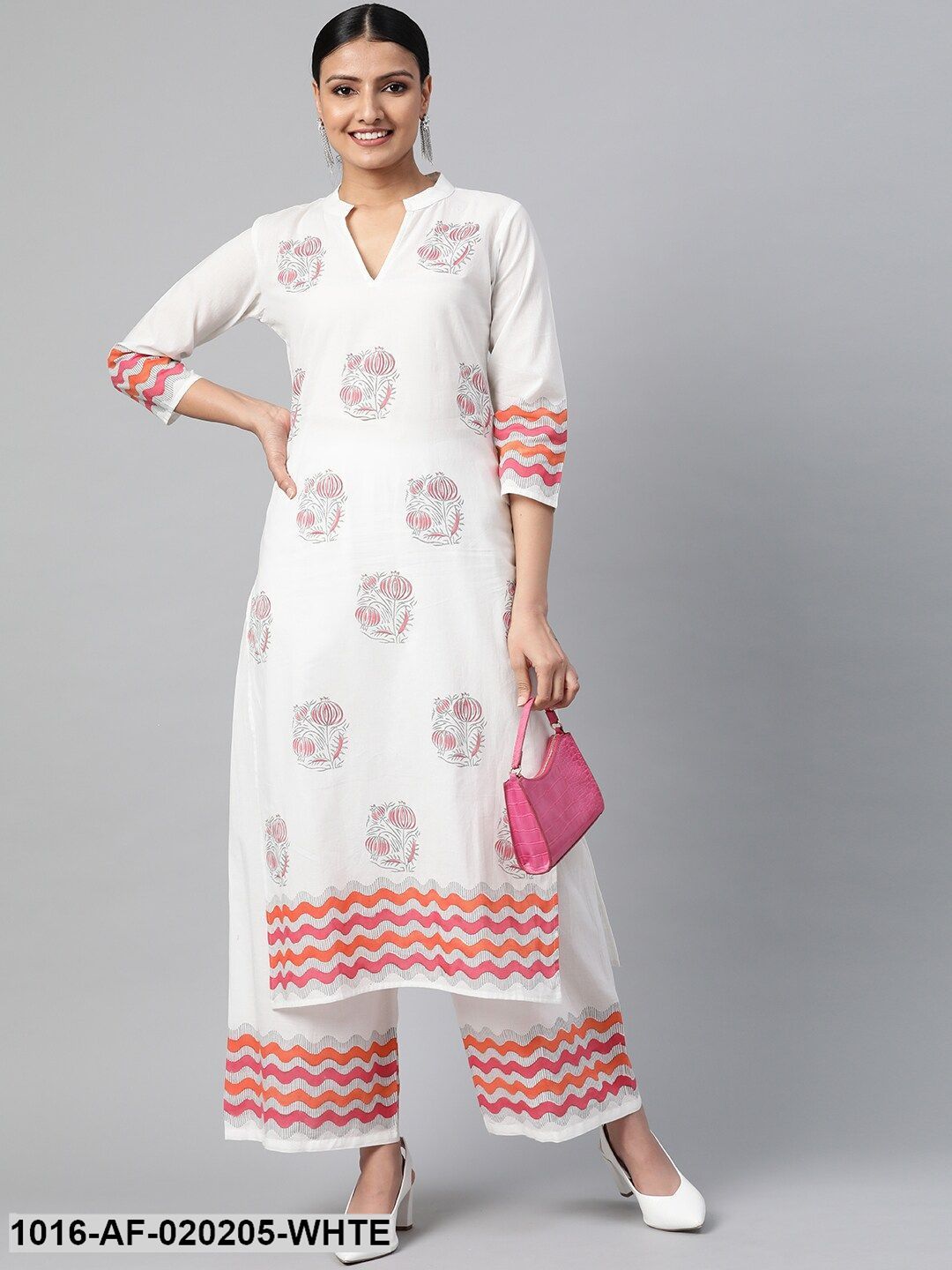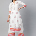 White & Pink Ethnic Motif Block Print Kurta with Palazzos