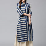 Blue & Off-White Striped Pathani Kurta