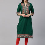 Green Printed Straight Kurta