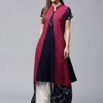 Navy Solid A-Line Kurta with Longline Ethnic Jacket