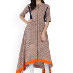 Peach-Coloured & Navy Blue Printed A-line Kurta