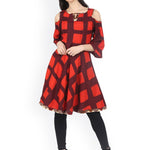 Red & Brown Checked A-Line Kurta