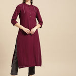 Burgundy Solid Straight Kurta