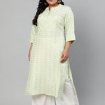 Plus Size Pastel Green & Gold Ethnic Motifs Printed Kurta