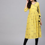Mustard Yellow Printed A-Line Kurta