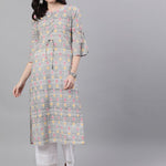Grey Printed Straight Kurta