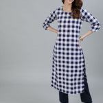 Navy Blue & White Checked Thread Work Crepe Kurta