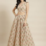 Women Beige Mughal Floral Crop Top With Anarkali Skirt