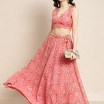 Women Peach Mughal Floral Crop Top With Anarkali Skirt
