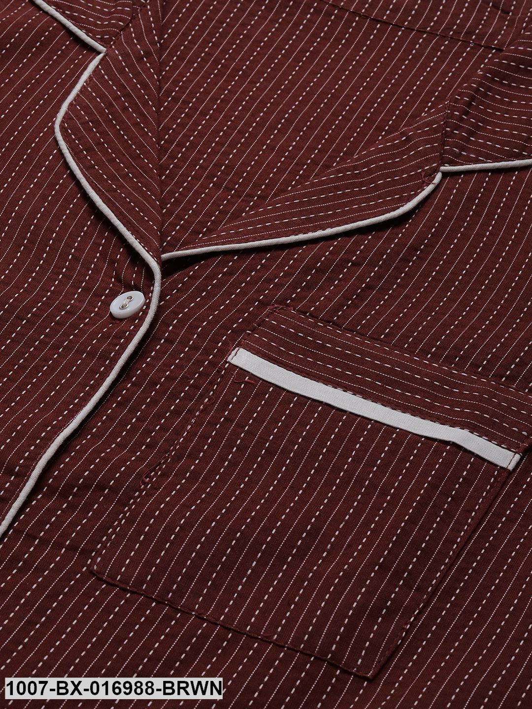 Featured Detail - Self Design Shirt Pyjama set with pipping detailing and Pocket on Shirt and Pyjama/p>