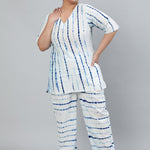 Plus Size Women Off- White Tie-Dye Printed Night Suit With Half Sleeves
