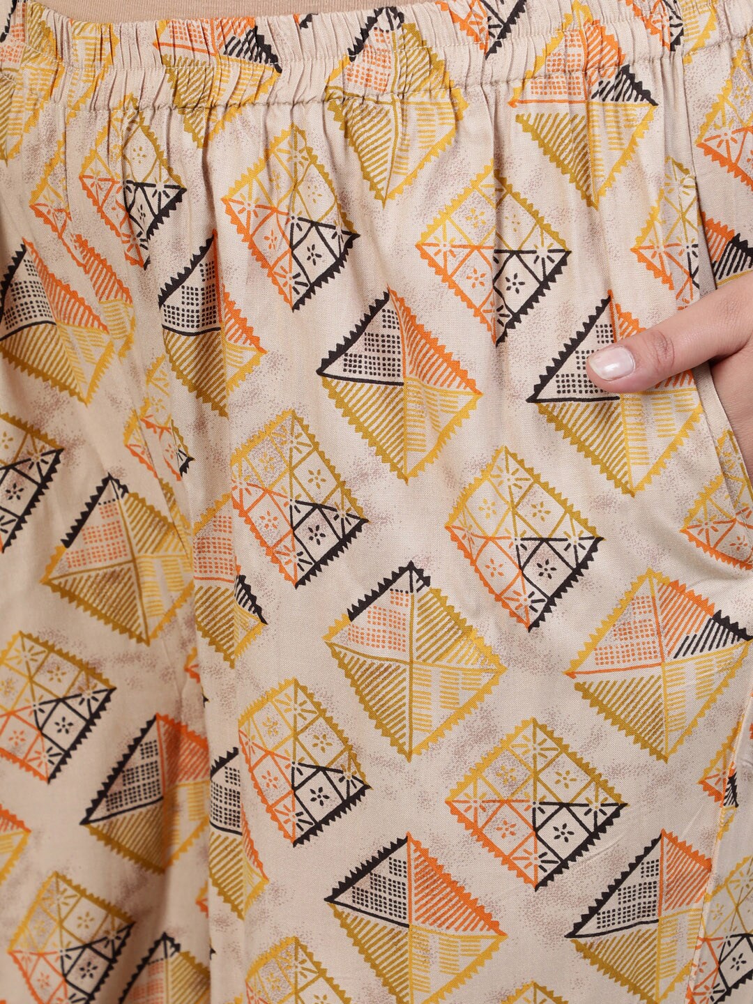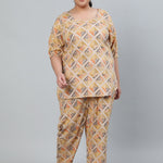 Plus Size Women Beige Printed Night Suit With Half Sleeves