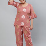 Plus Size Women Pink Printed Night Suit With Half Sleeves