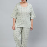 Plus Size Women Green Printed Night Suit With Half Sleeves