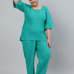 Plus Size Women Green Printed Night Suit With Half Sleeves