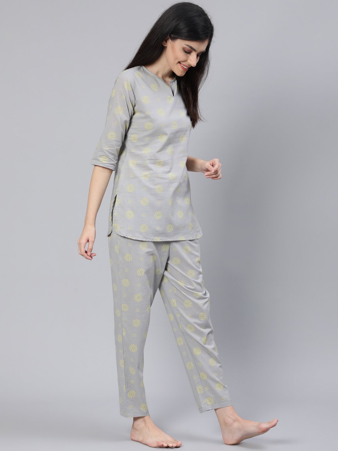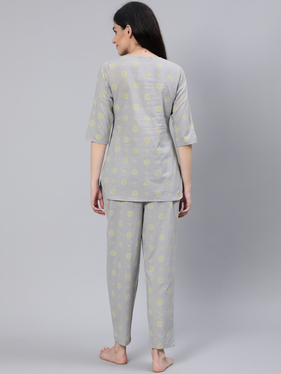 Women Grey Printed Night Suit