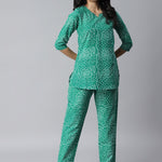 Women's Bandhani Print Cotton Night Suit Set (Green)