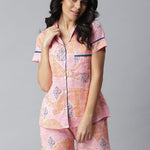 Women's Printed Cotton Slub Night Suit Set (Light Pink)