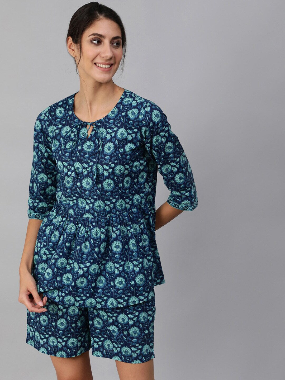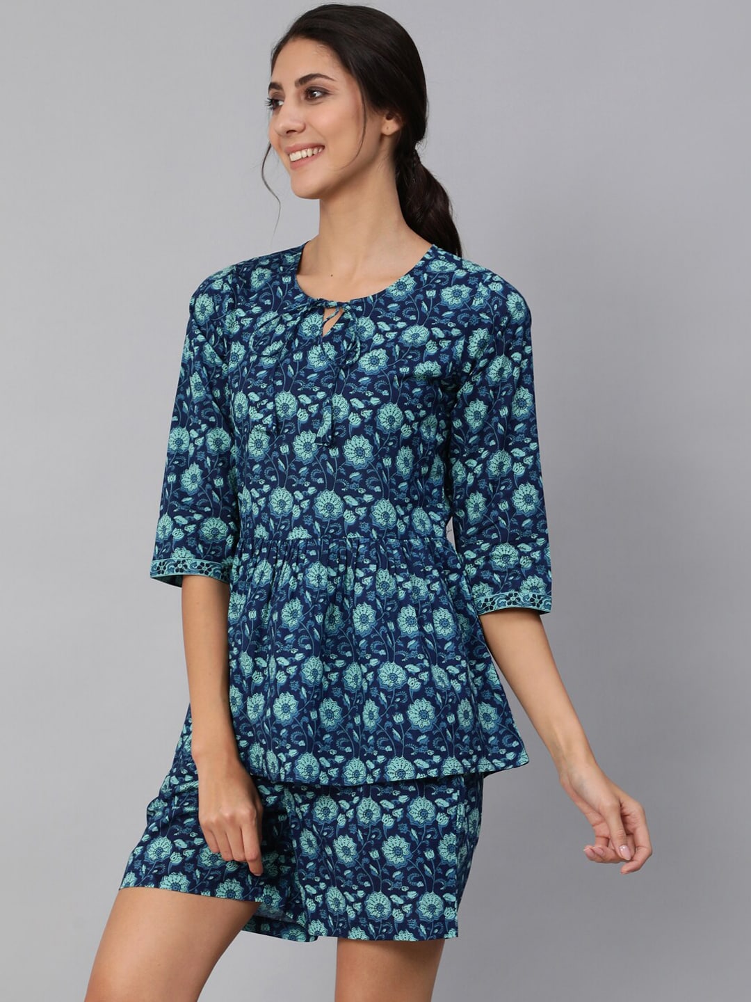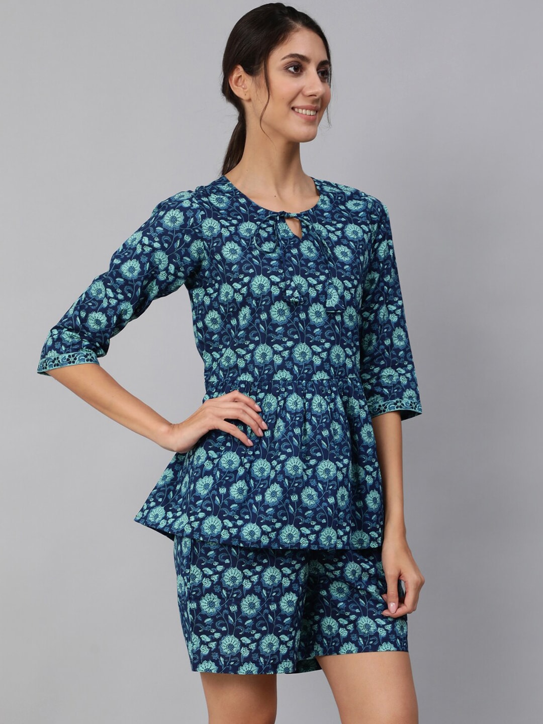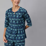 Women Blue Floral Printed Night Suit