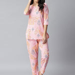 Women's Printed Cotton Slub Night Suit Set (Light Pink) (Pre-Order)