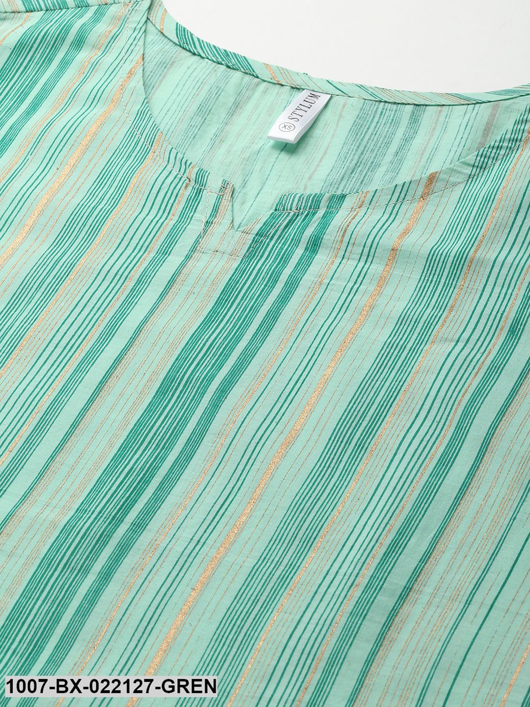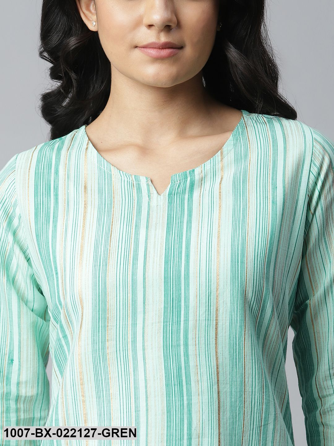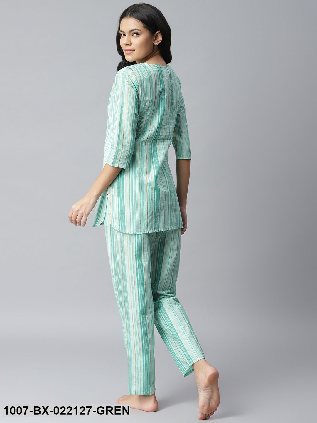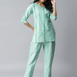 Women's Striped Cotton Night Suit Set (Light Green) (Pre-Order)