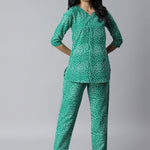 Women's Bandhani Print Cotton Night Suit Set (Green) (Pre-Order)