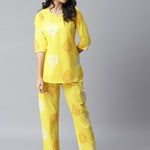 Women's Printed Cotton Night Suit Set (Yellow) (Pre-Order)
