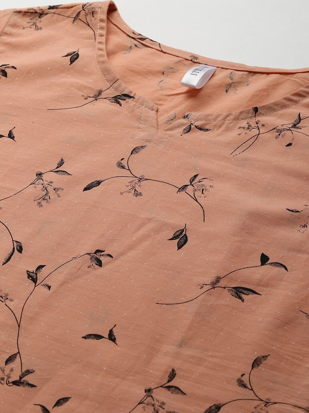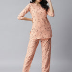 Women's Printed Cotton Night Suit Set (Peach) (Pre-Order)