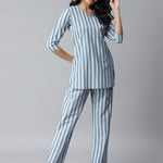 Women's Striped Cotton Night Suit Set (Grey) (Pre-Order)
