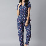 Women's Floral Printed Rayon Night Suit Set (Blue) (Pre-Order)