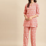 Peach-Coloured & White Pure Cotton Printed Night Suit
