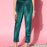 Women Emerald Green Velvet Embroidered Pencil Pants