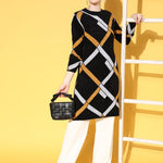 Women Black & Mustard Check Hair Wool Long Sweater