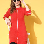 Red Hair Wool Long Sweater, in Naylon fabric, Unlined, Knee Length, Comfort Fit, No Closure, Straight Hemline and features Placement Knitted Sweaters